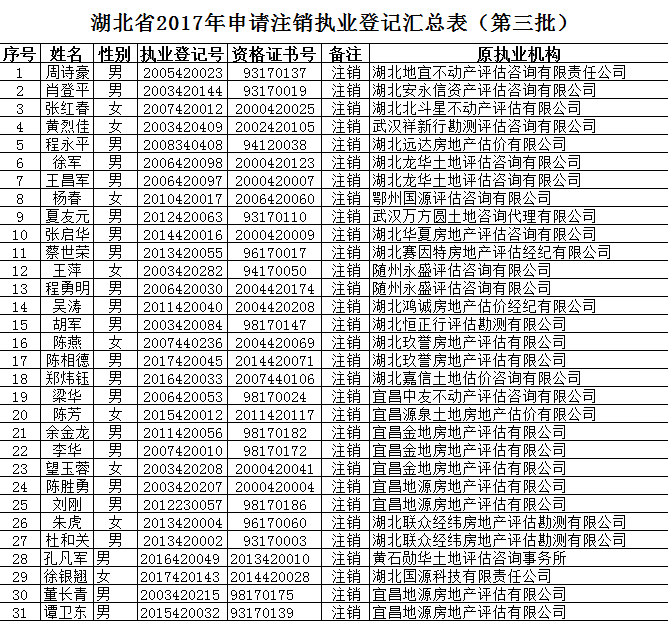 估价师信息已在相关网站作注销处理,若有疑问请电话咨询:俞蓉(027-87830535转601)