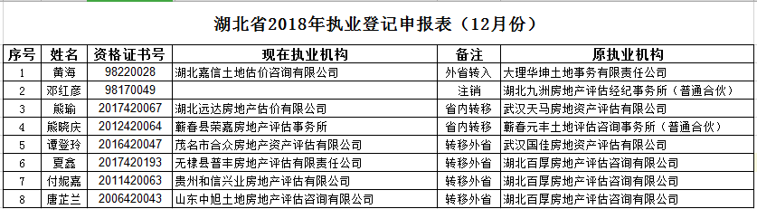 【上一篇】: 2018年12月土地登记代理人员转移登记公示