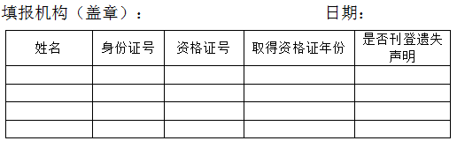 根据国土资源部和中估协工作部署,为推动土地估价机构备案工作顺利开展,请将土地估价师格证书遗失情况填报完成后于12月8日(本周五)前发送至8239045@qq.com邮箱,我们统一汇总后上报。具体解决情形待国土部确认后反馈,相关人员备案可先提交遗失声明。
