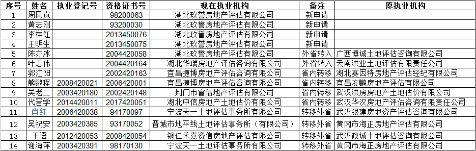 2018年3月土地估价师执业登记申报及转移注销情况公示