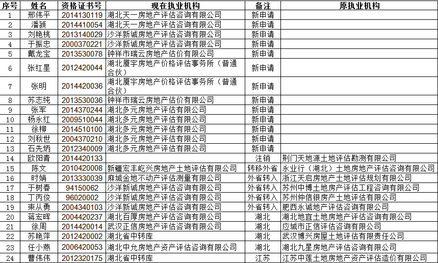 2018年4月土地估价师执业登记申报及转移注销情况公示