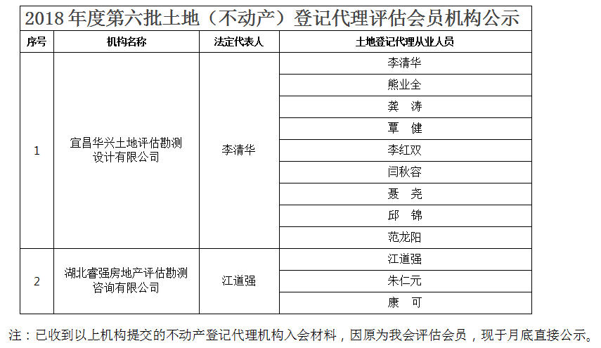 2018年度第六批土地(不动产)登记代理评估会员机构公示