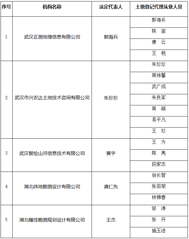 根据《湖北省土地估价与登记代理协会章程》和《湖北省土地(不动产)登记代理中介机构登记服务办法(暂行)》,经机构自愿申请,协会秘书处受理,会员会籍委员会审查,并经书面征求常务理事会同意,拟吸纳如下土地(不动产)登记代理机构入会,现公示如下,如有异议请于一周内联系省协会(027-87830535 邓少蓉)。