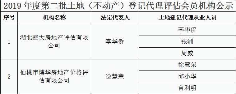 2019年度第二批土地(不动产)登记代理评估会员机构公示