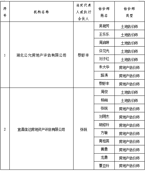 根据《湖北省土地估价与登记代理协会章程》,经机构自愿申请,协会秘书处受理,会员会籍委员会初审,并经常务理事会同意,现对符合《湖北省土地估价师协会入会及会员会籍管理办法》条件的2家土地估价机构吸纳入会,现公示如下: