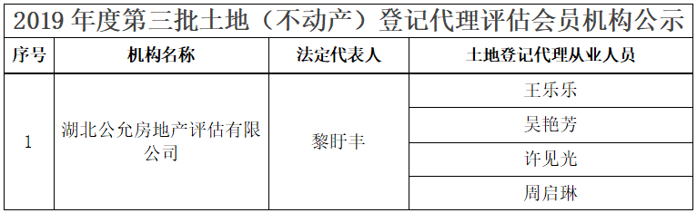 2019年度第三批土地(不动产)登记代理评估会员机构公示