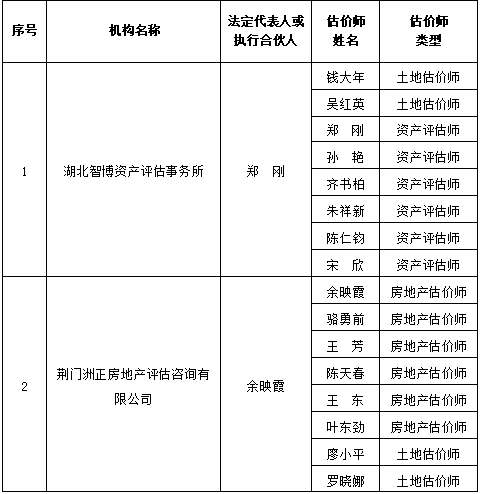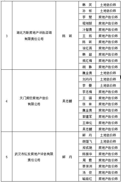 根据《湖北省土地估价与登记代理协会章程》,经机构自愿申请,协会秘书处受理,会员会籍委员会初审,并经常务理事会同意,现对符合《湖北省土地估价师协会入会及会员会籍管理办法》条件的5家土地估价机构吸纳入会,现公示如下: