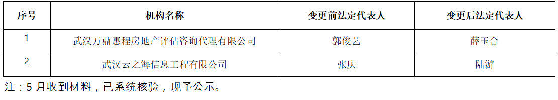 2020年5月不动产登记代理机构法定代表人变更登记公示