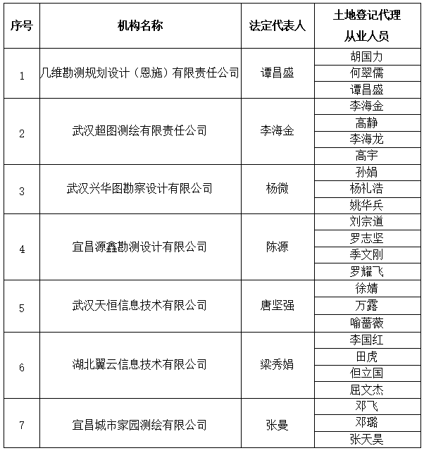 根据《湖北省土地估价与登记代理协会章程》和《湖北省土地(不动产)登记代理中介机构登记服务办法(暂行)》,经机构自愿申请,协会秘书处受理,会员会籍委员会审查,并经书面征求常务理事会同意,拟吸纳如下土地(不动产)登记代理机构入会,现公示如下,如有异议请于一周内联系省协会(027-87830535 邓少蓉)。