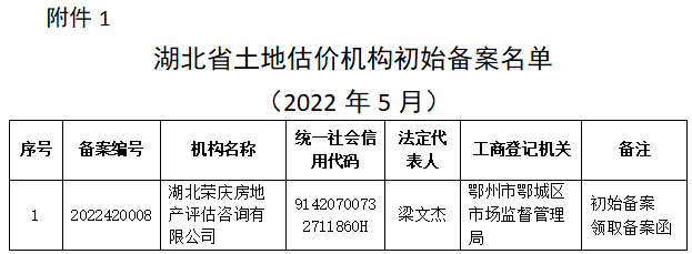 1.湖北省土地估价机构初始备案名单(2022年5月)