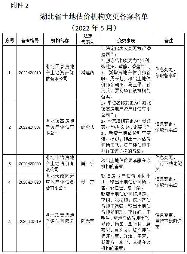 2.湖北省土地估价机构变更备案名单(2022年5月)